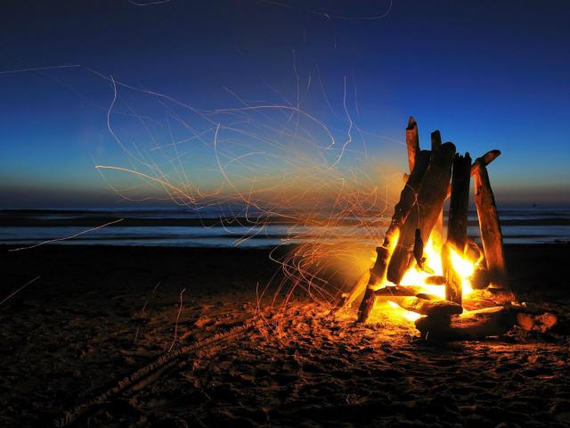 Обои Костер на песке на берегу моря