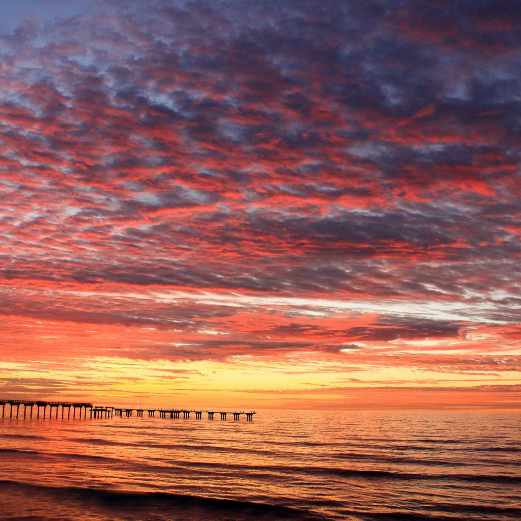Обои Океан, Низкие облака, Розовые облака