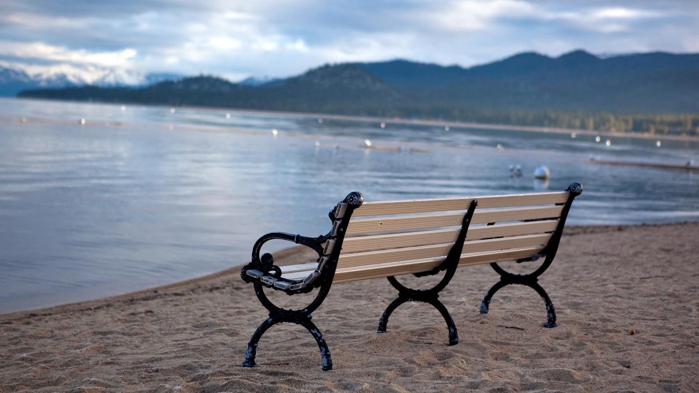 Обои Скамейка на пляже