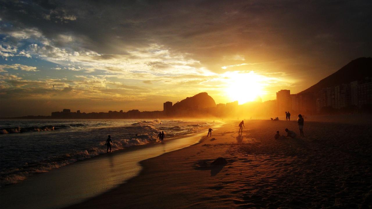 Обои Купание на заходе солнца