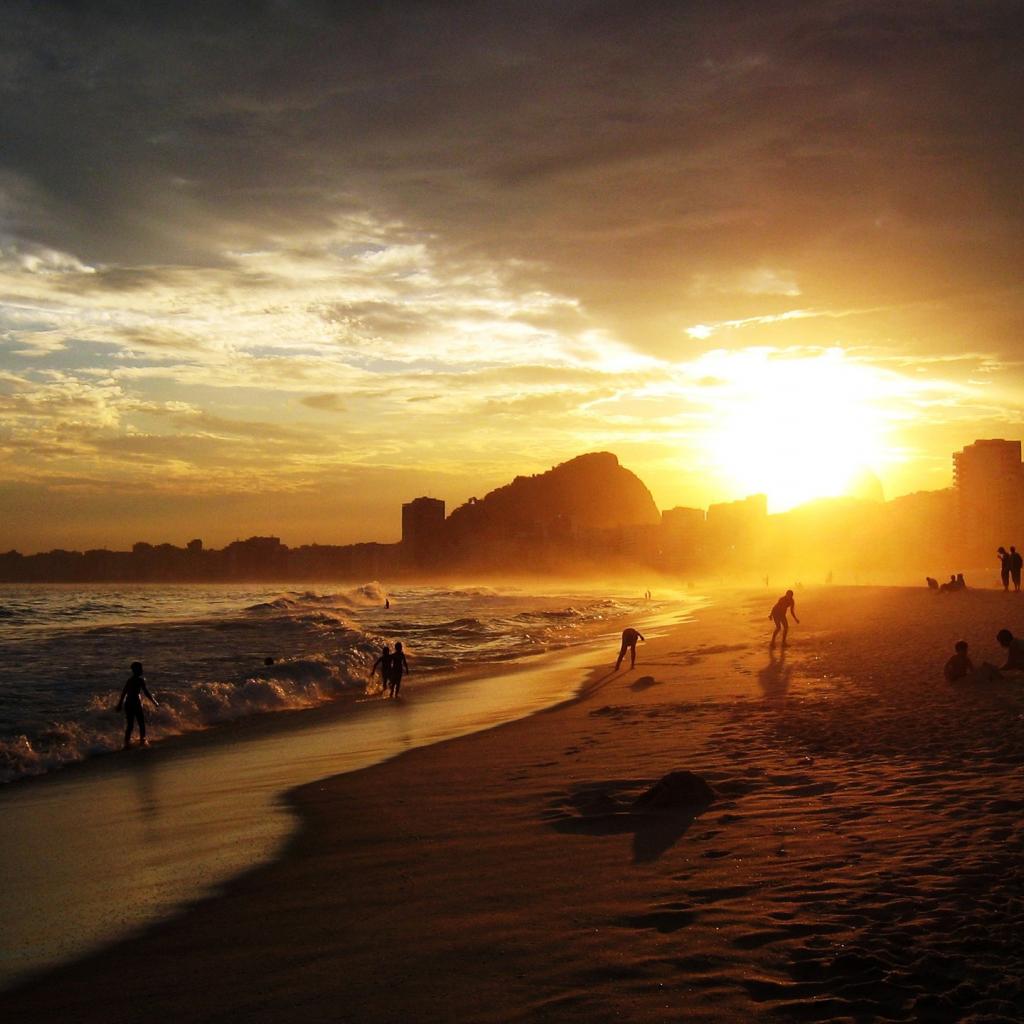 Обои Купание на заходе солнца