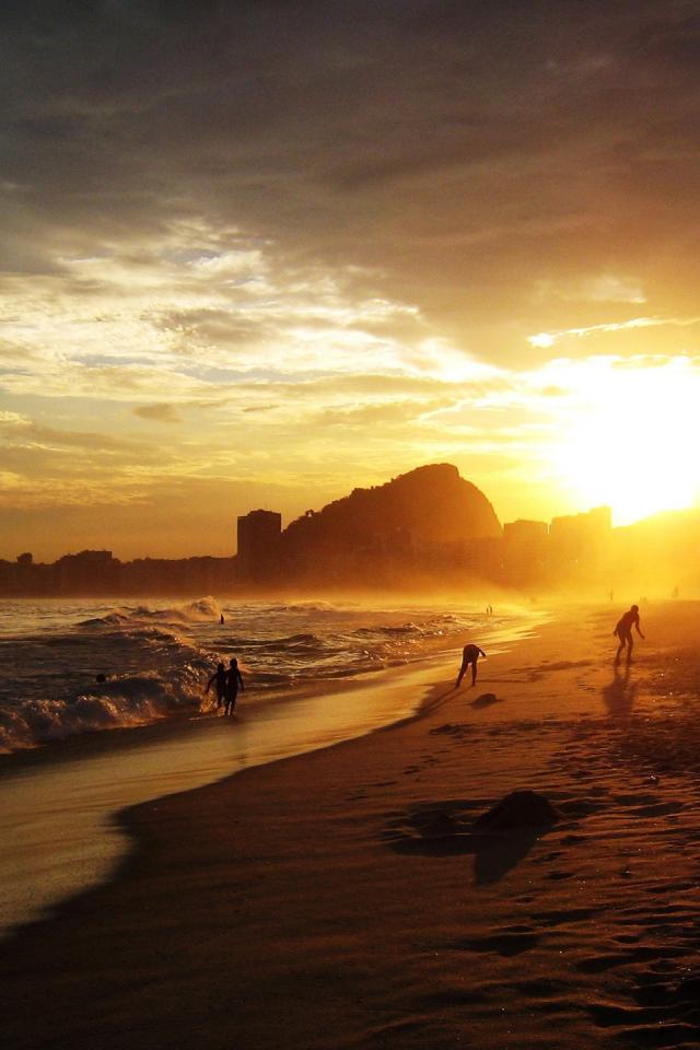 Обои Купание на заходе солнца