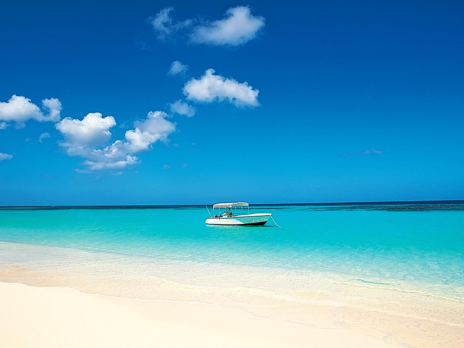 Обои Катер на якоре у пляжа
