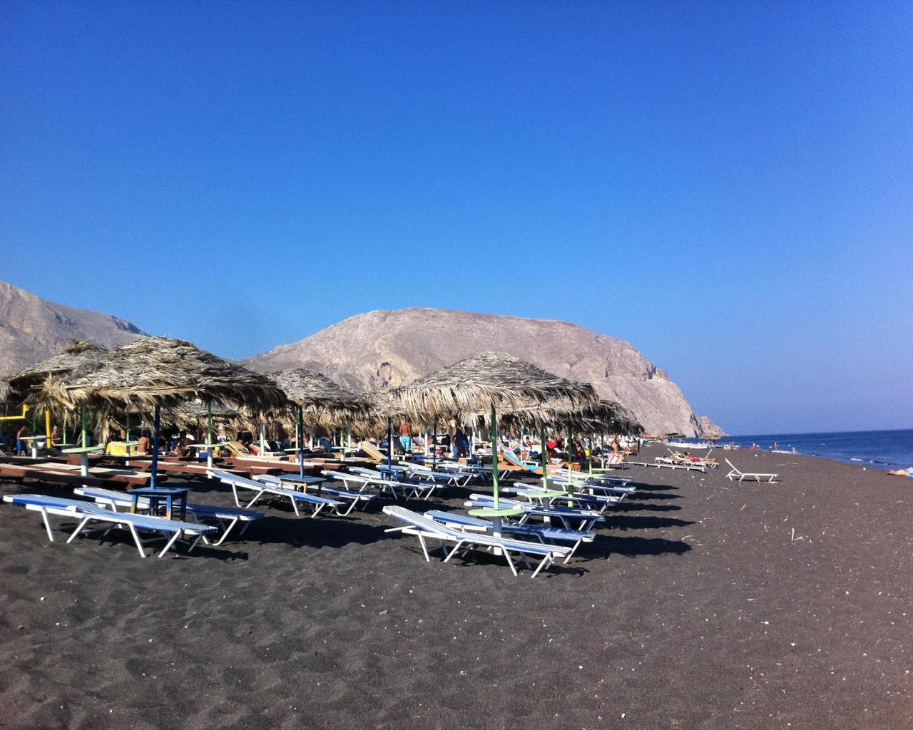 Обои Отдых на черном пляже в Санторини