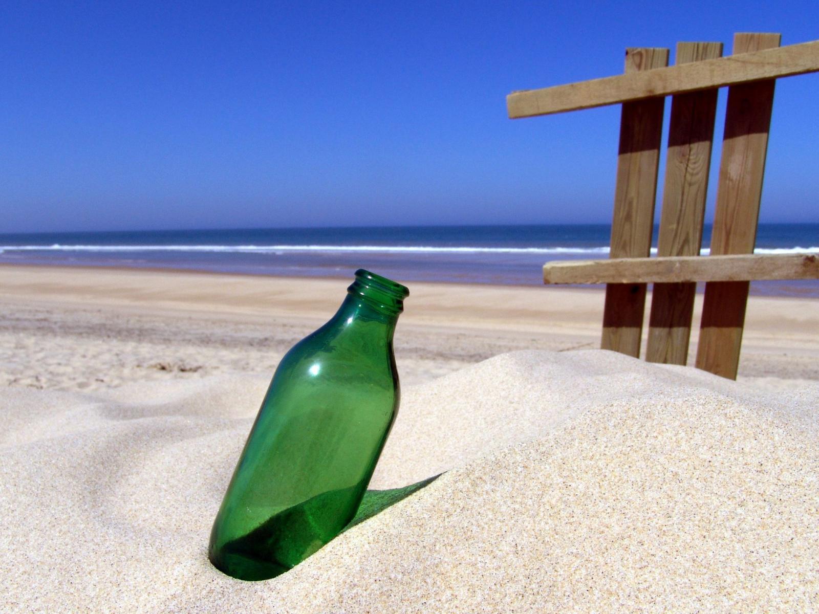 Обои Бутылка в песке