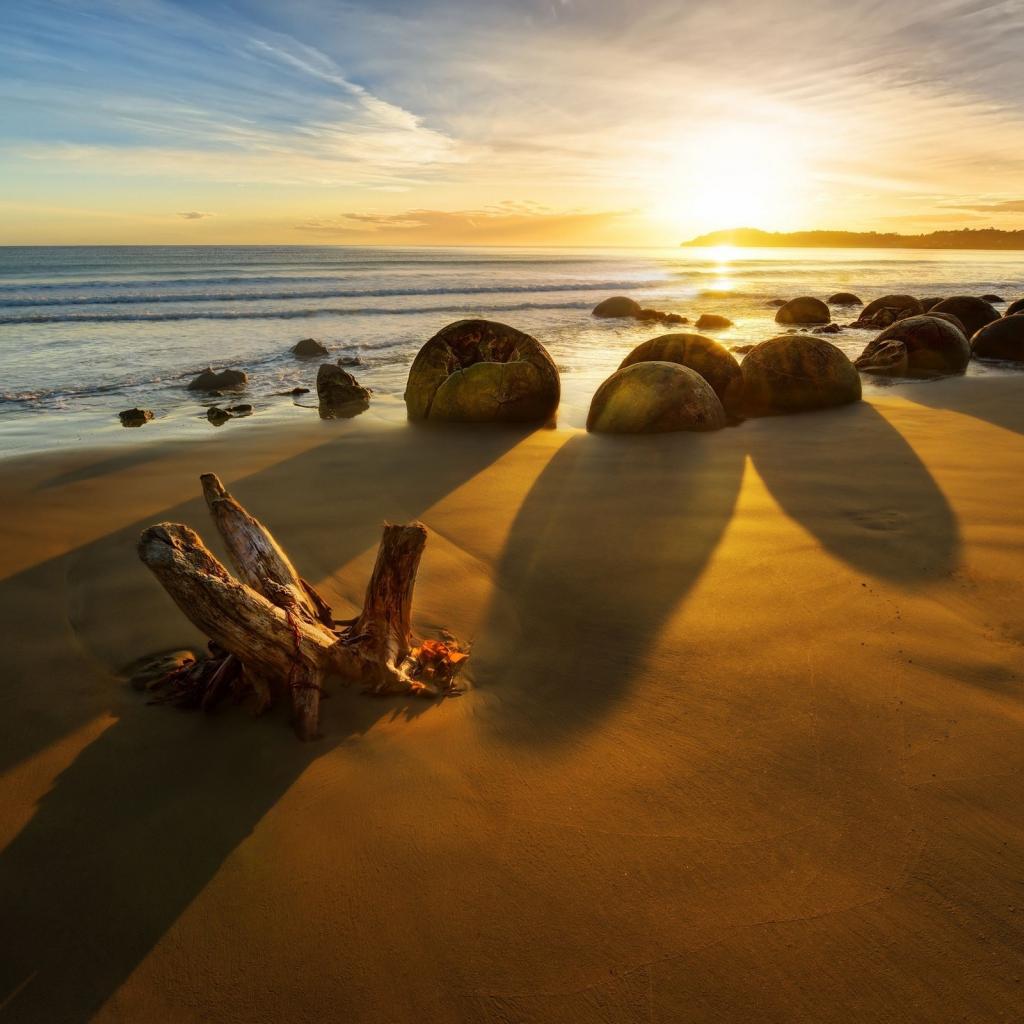 Обои Каменные глыбы на золотом пляже