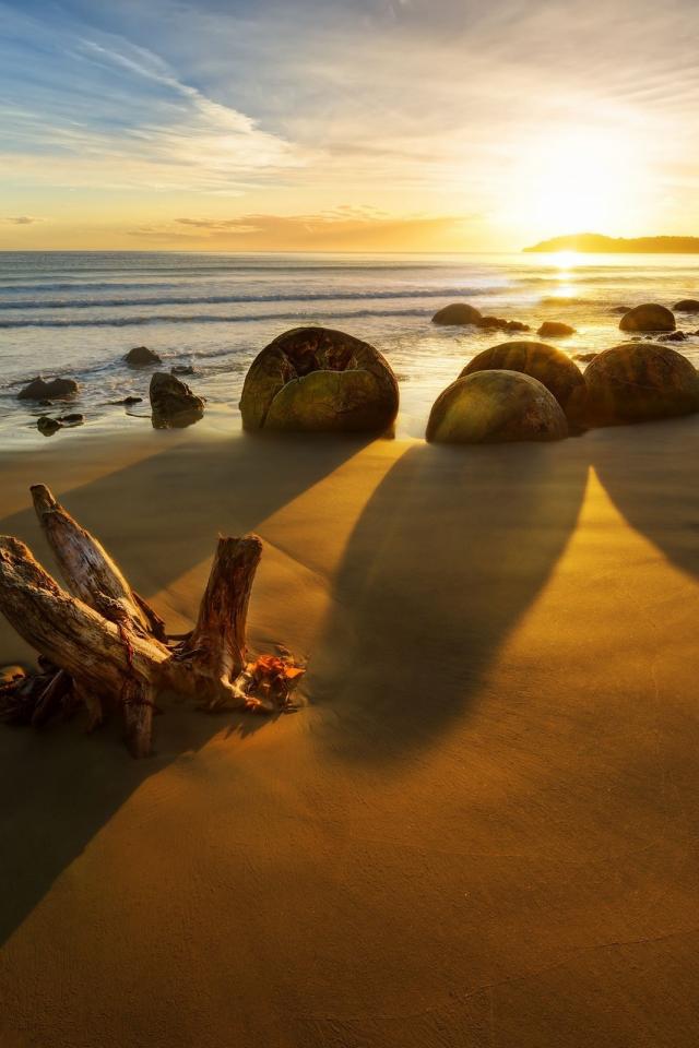 Обои Каменные глыбы на золотом пляже