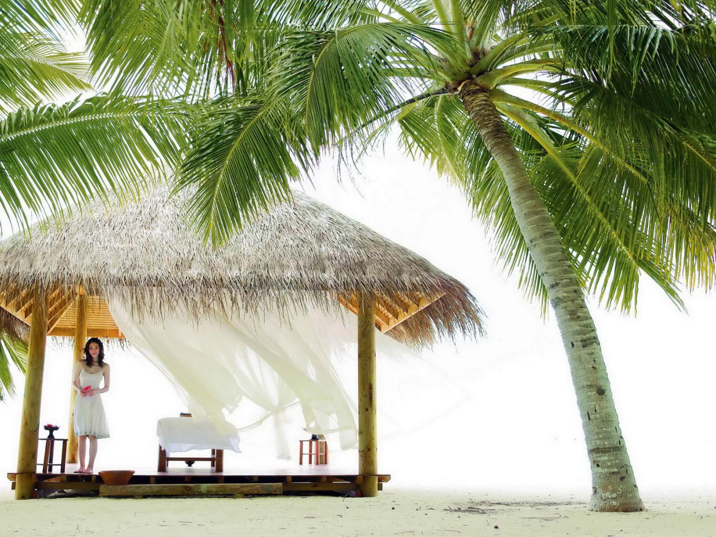 Обои Беседка под пальмой