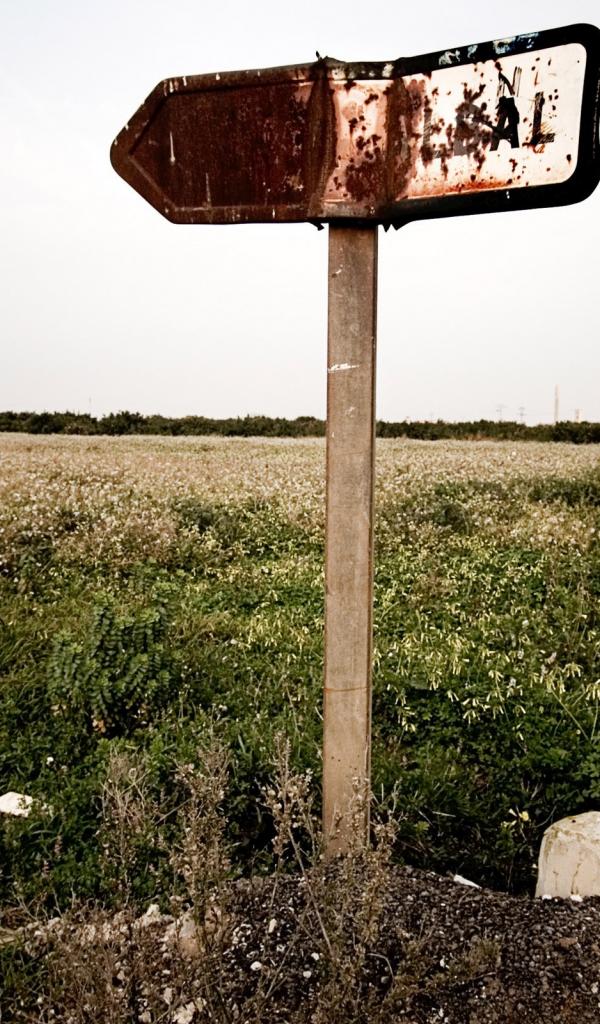 Обои Ржавый указатель направления у поля