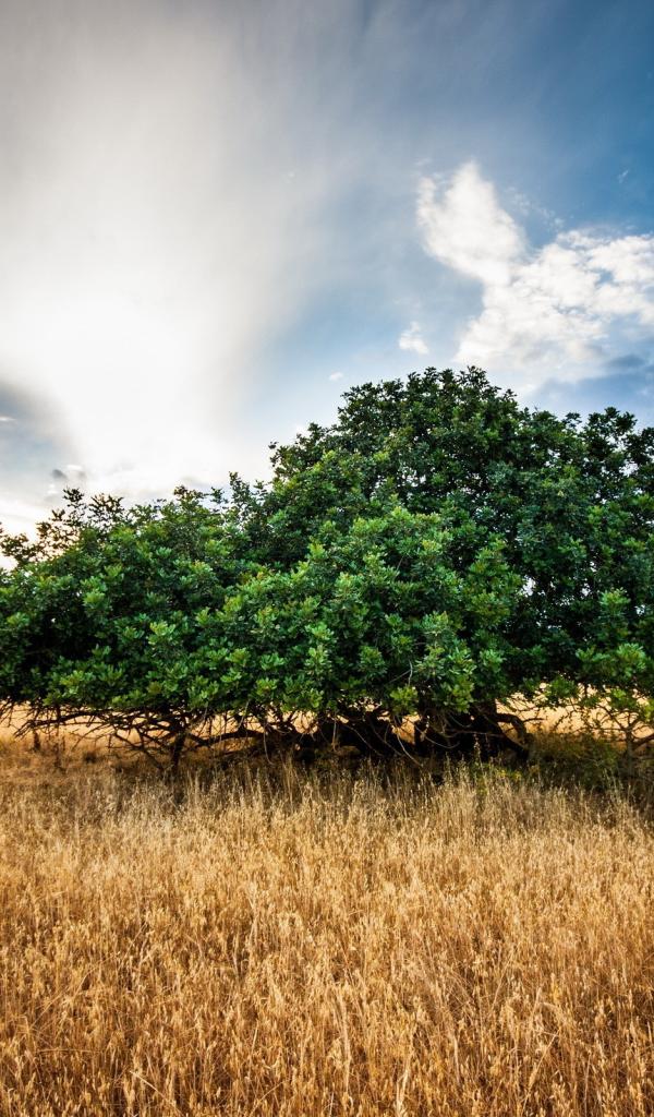Обои Зеленое дерево среди поля, фото HDR