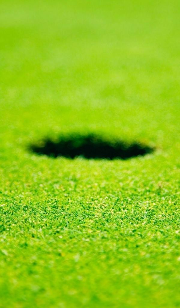 Обои Белый мяч для гольфа у лунки