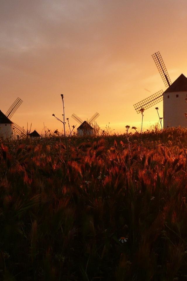 Обои Ветряные мельницы на поле