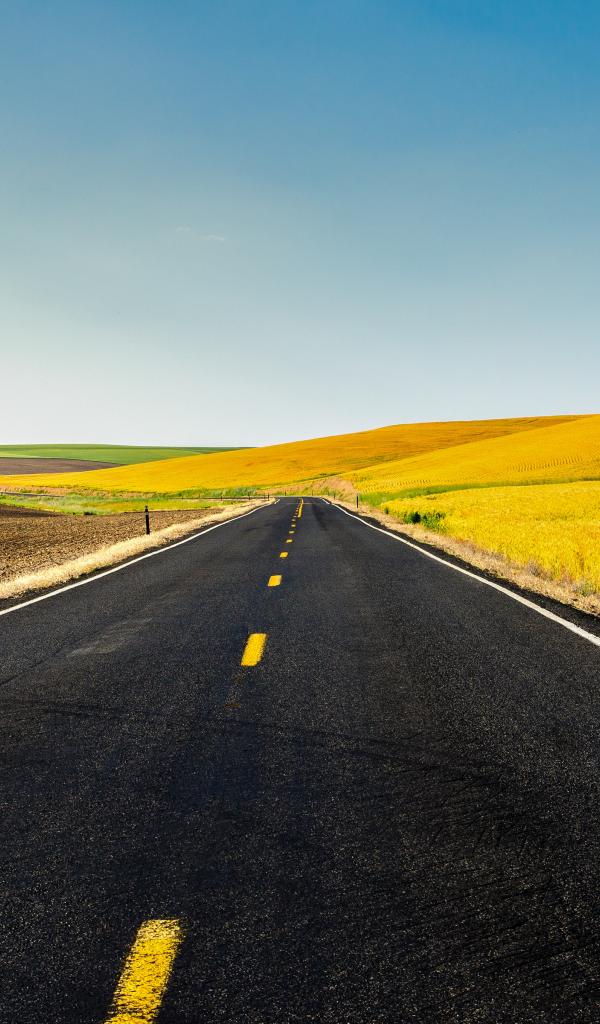 Обои Дорога и жёлтые поля
