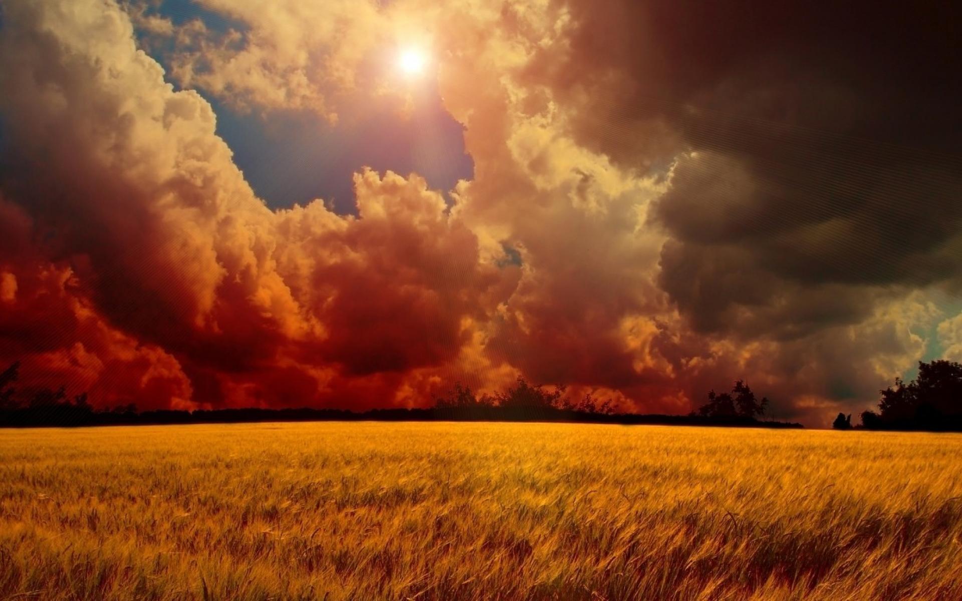 Обои Пшеничное поле перед дождем