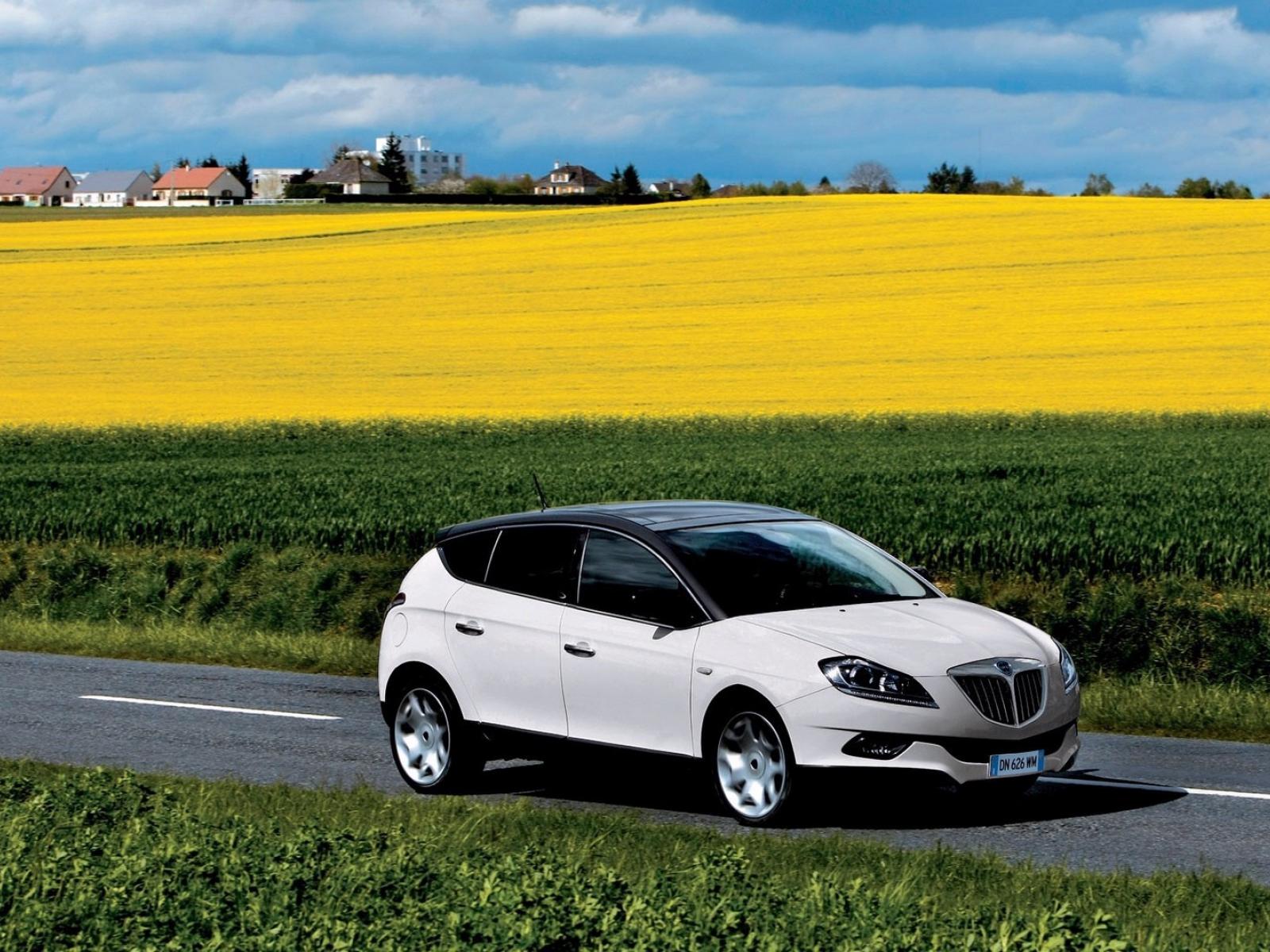 Обои Автомобиль едет среди полей