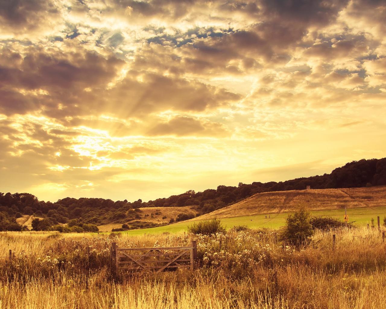 Обои Закат на осеннем поле