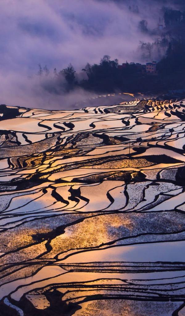 Обои Залитые водой рисовые поля
