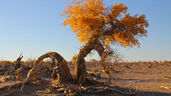 Обои Полусухое дерево с желтыми листьями