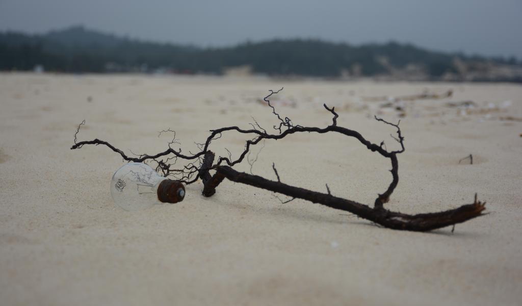 » Обои Черная ветка на белом песке