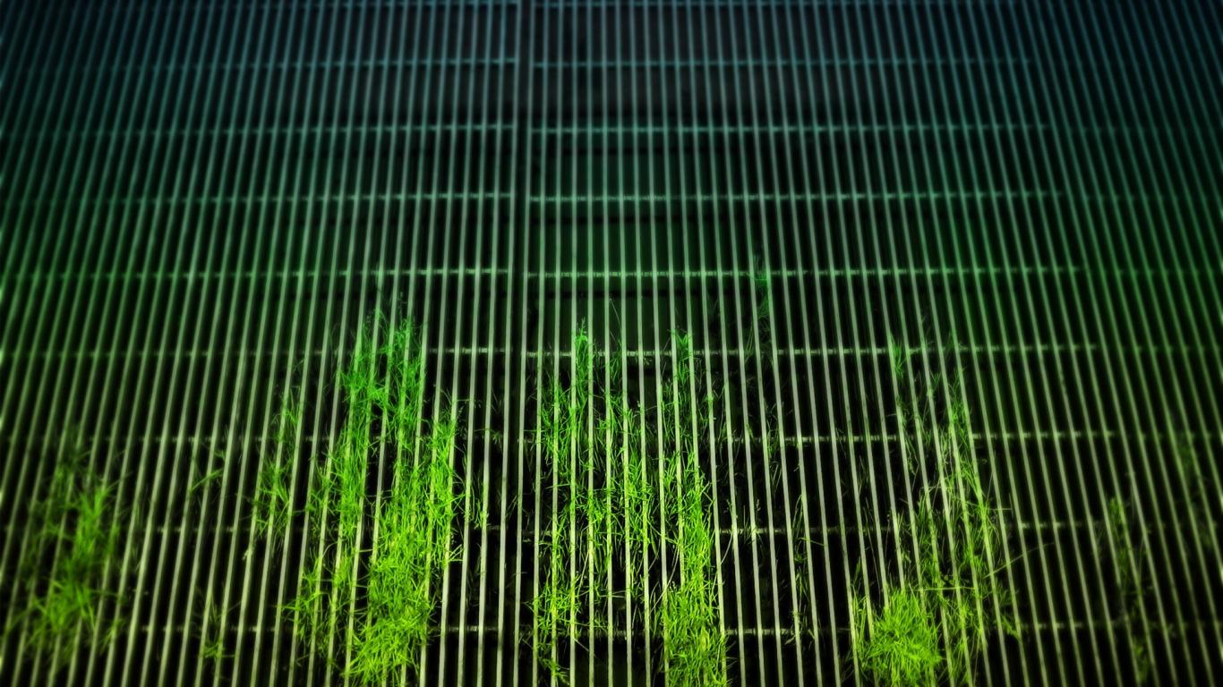 Обои Растения пробиваются сквозь решетку