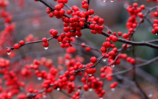 Обои Капли дождя на ягодах калины