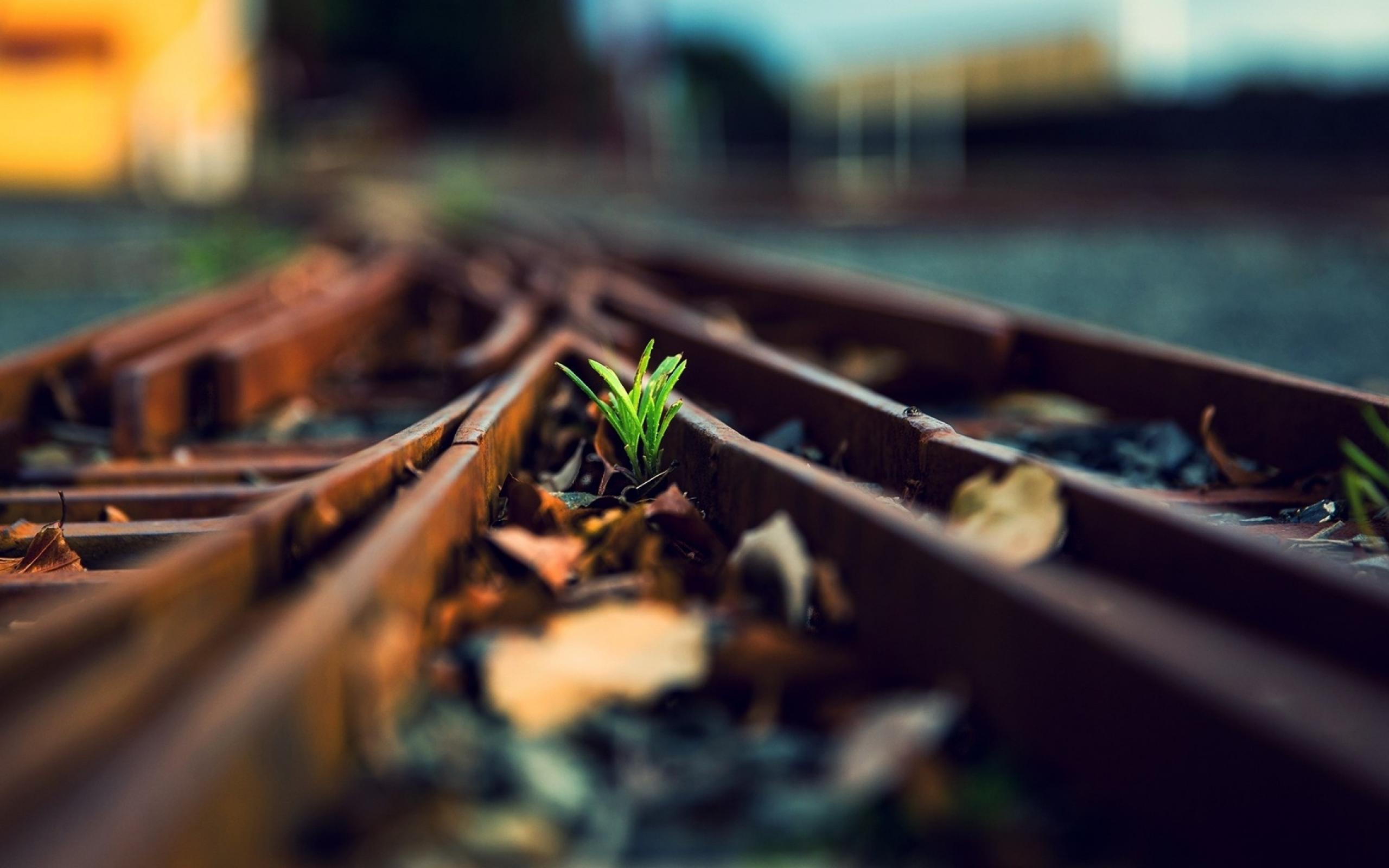 Обои Росток между ржавых рельс железной дороги