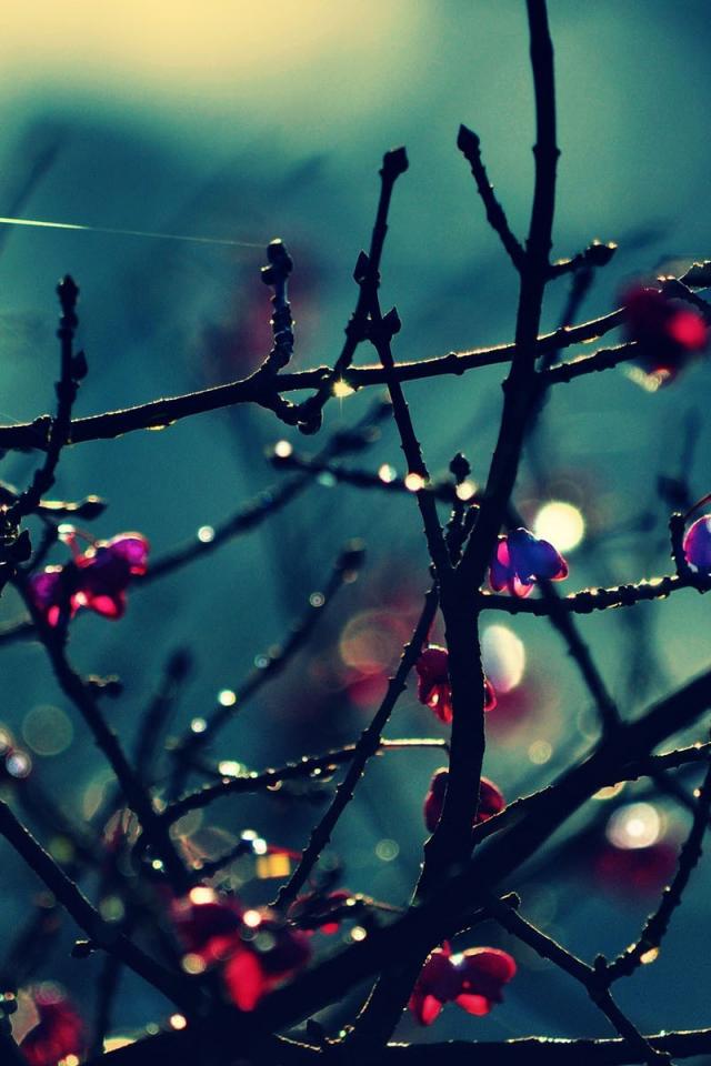 Обои Красные цветы на голых ветках