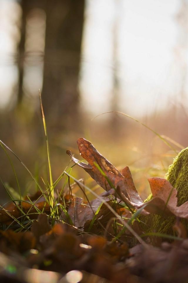Обои Тонкая трава пробивается сквозь прошлогодние листья