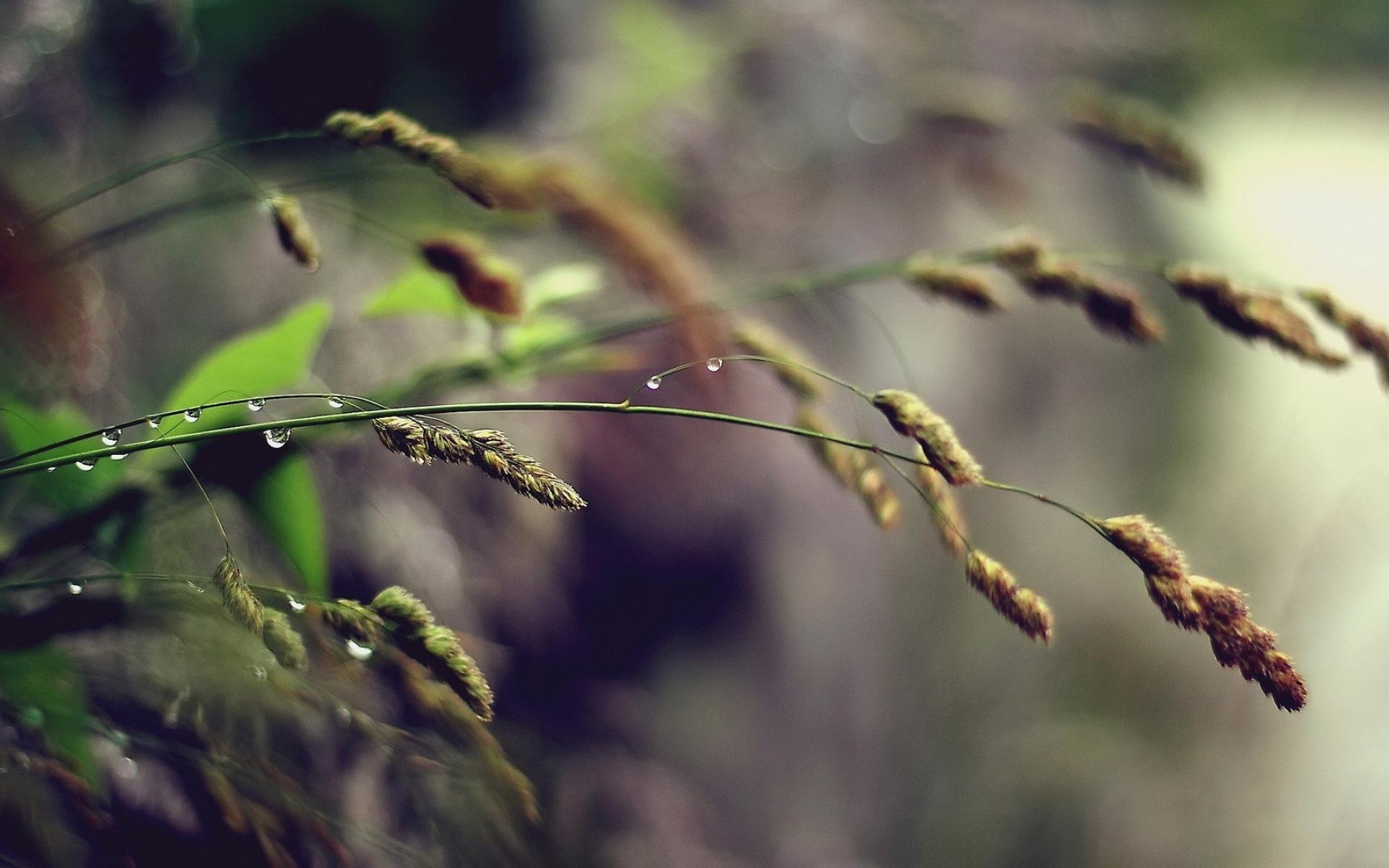 Обои Полевая трава, капли воды