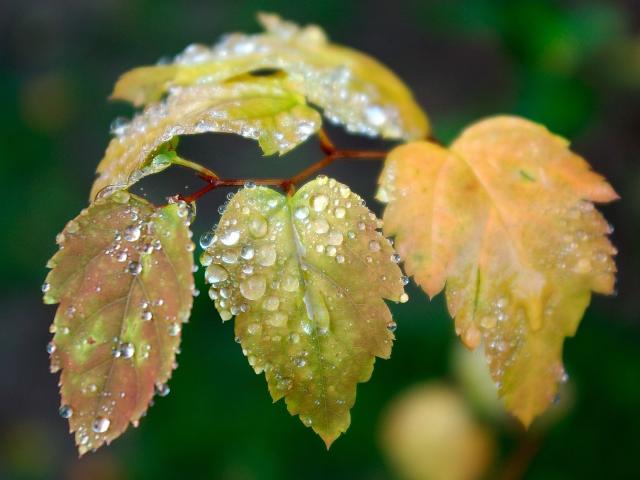 Обои Влага на листьях ветки березы