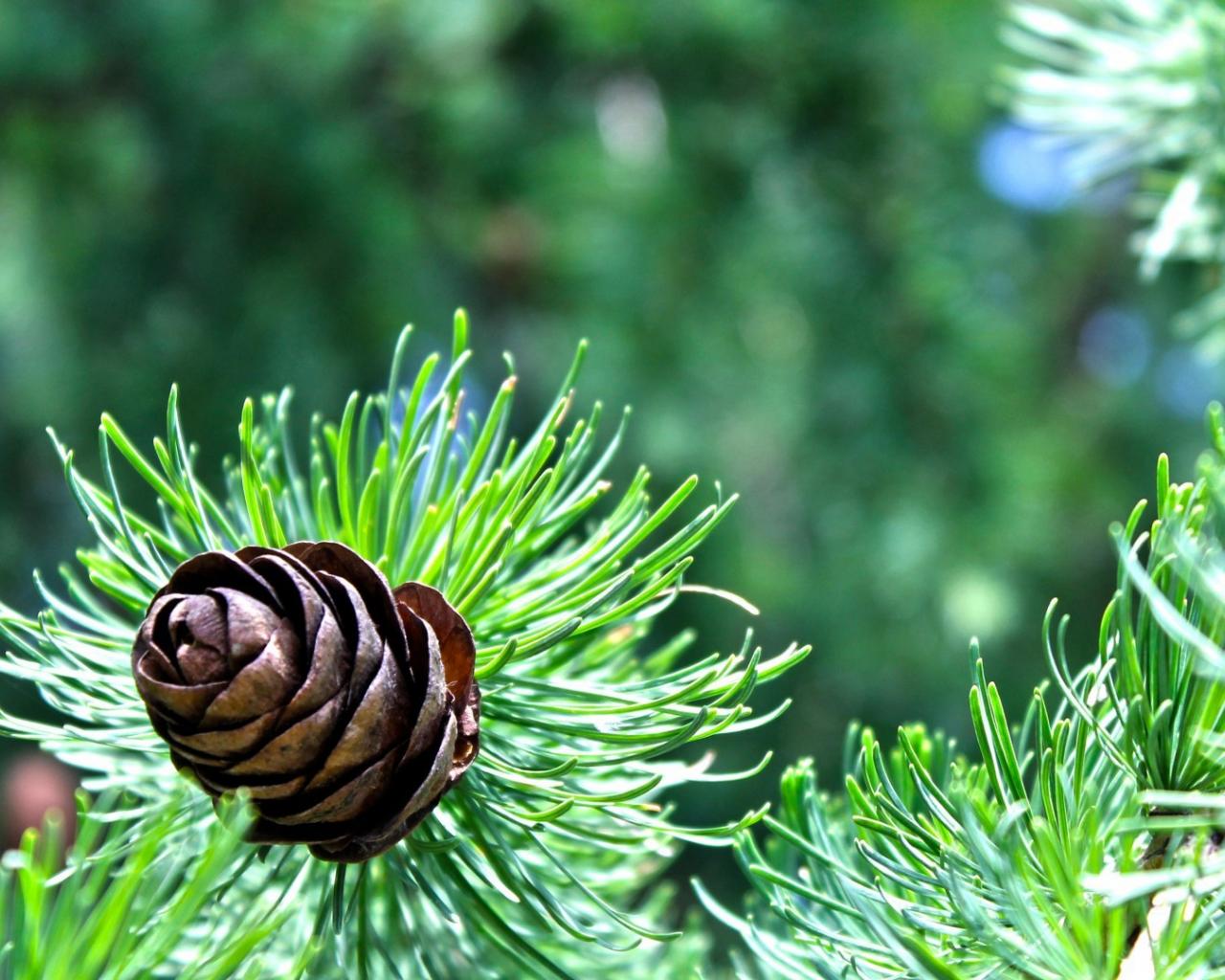 Обои Небольшая шишка на еловой ветке