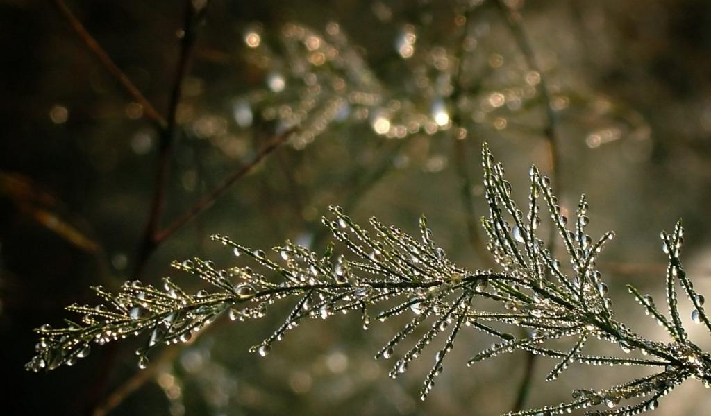 » Обои Капельки воды на ветке дерева