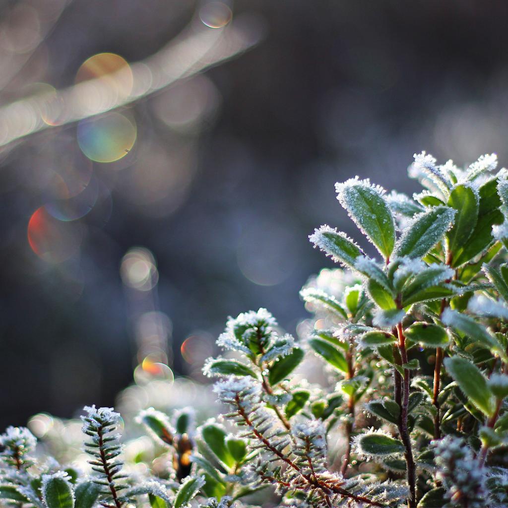 Обои Кристаллы льда на зеленой траве