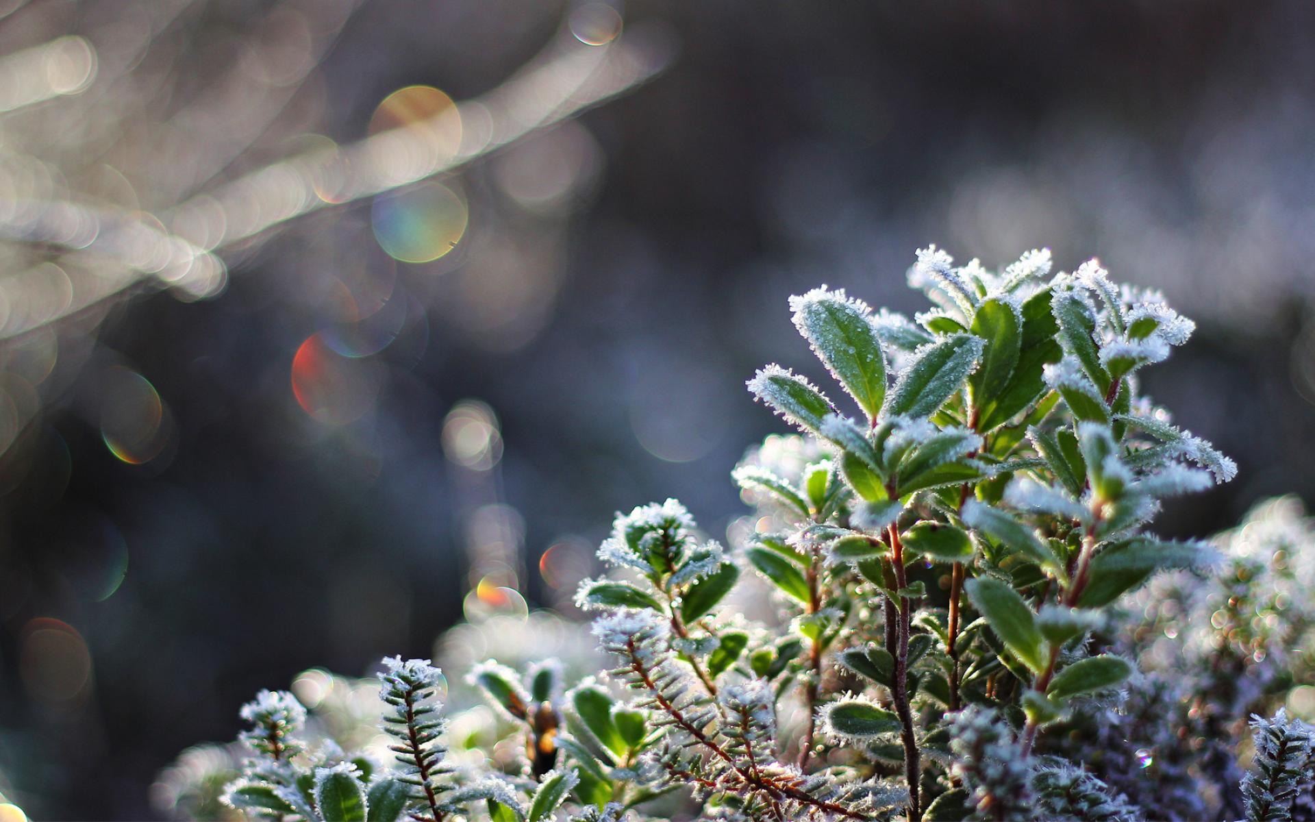 Обои Кристаллы льда на зеленой траве