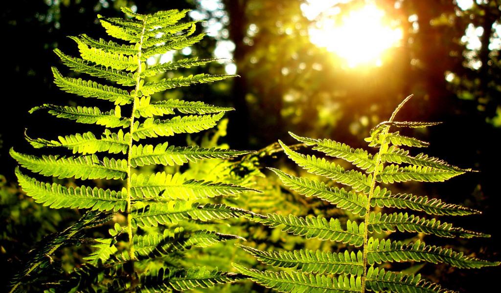 Обои Листья папоротника на солнце