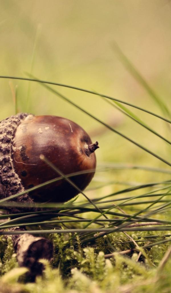 Обои Желудь лежит на траве