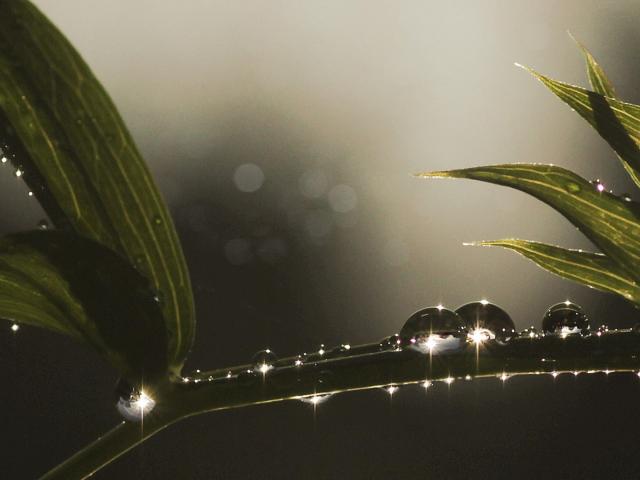 Обои Блестящие капли росы на ветке