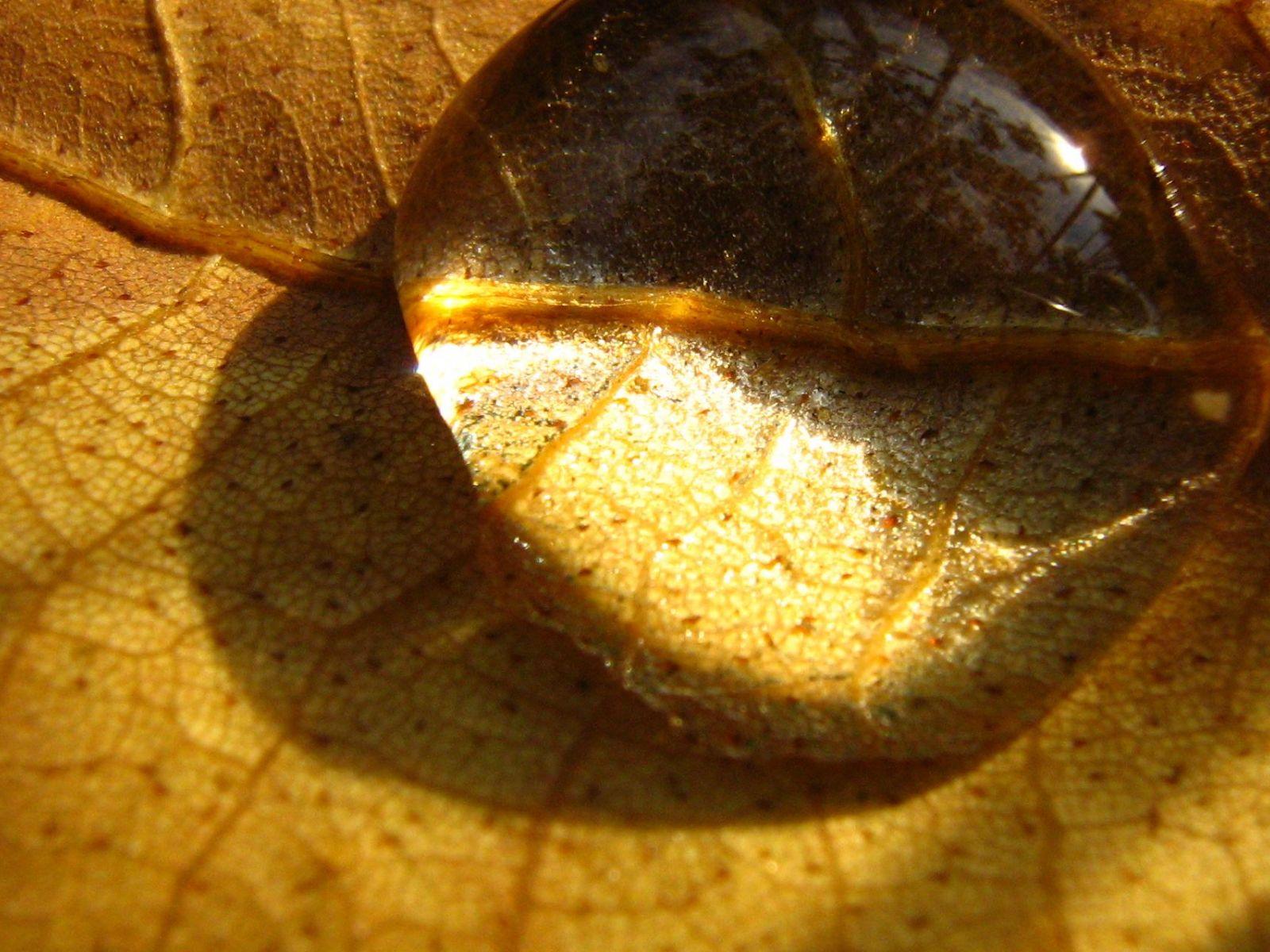 Обои Капелька на сухом листе