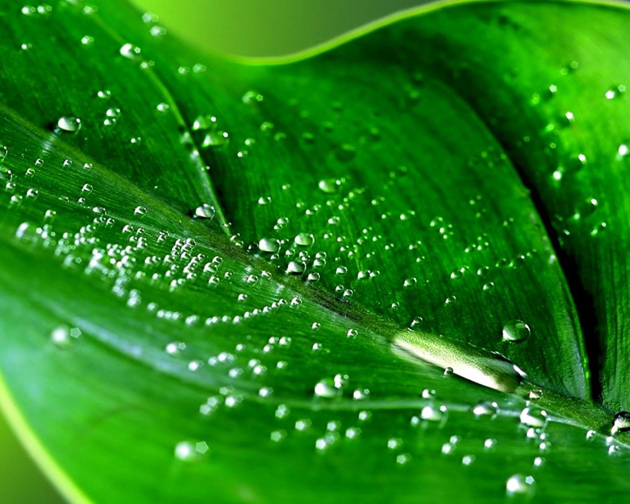 Обои Влажный зеленый лист