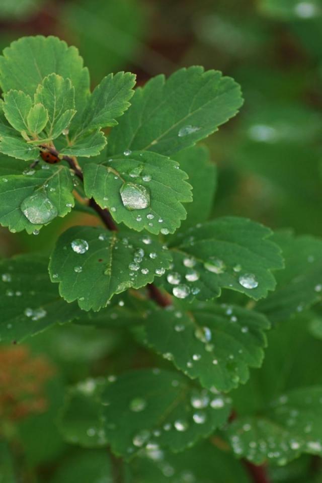 Обои Роса на листьях