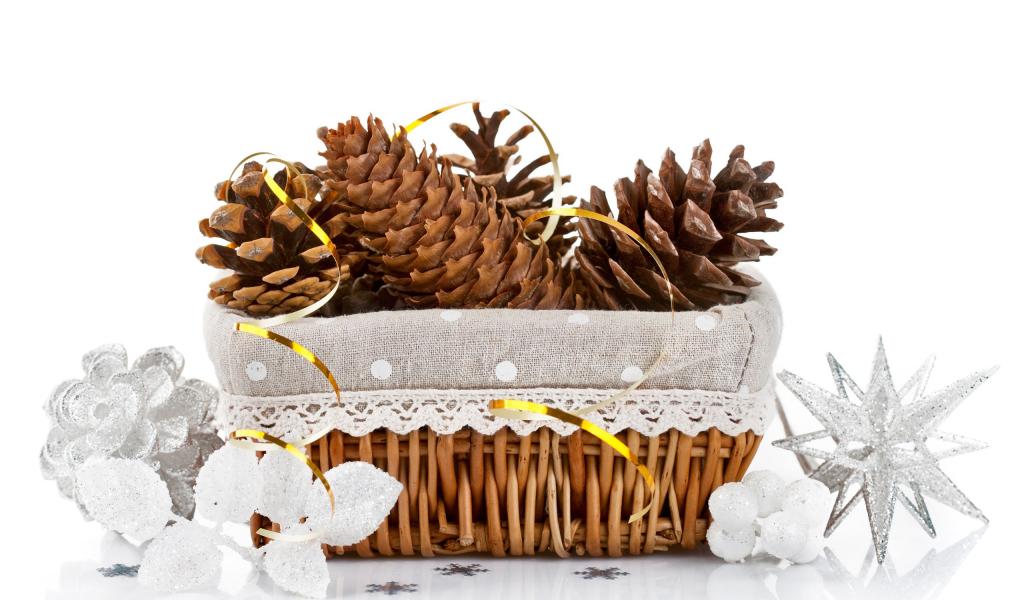 Обои Корзина с еловыми шишками