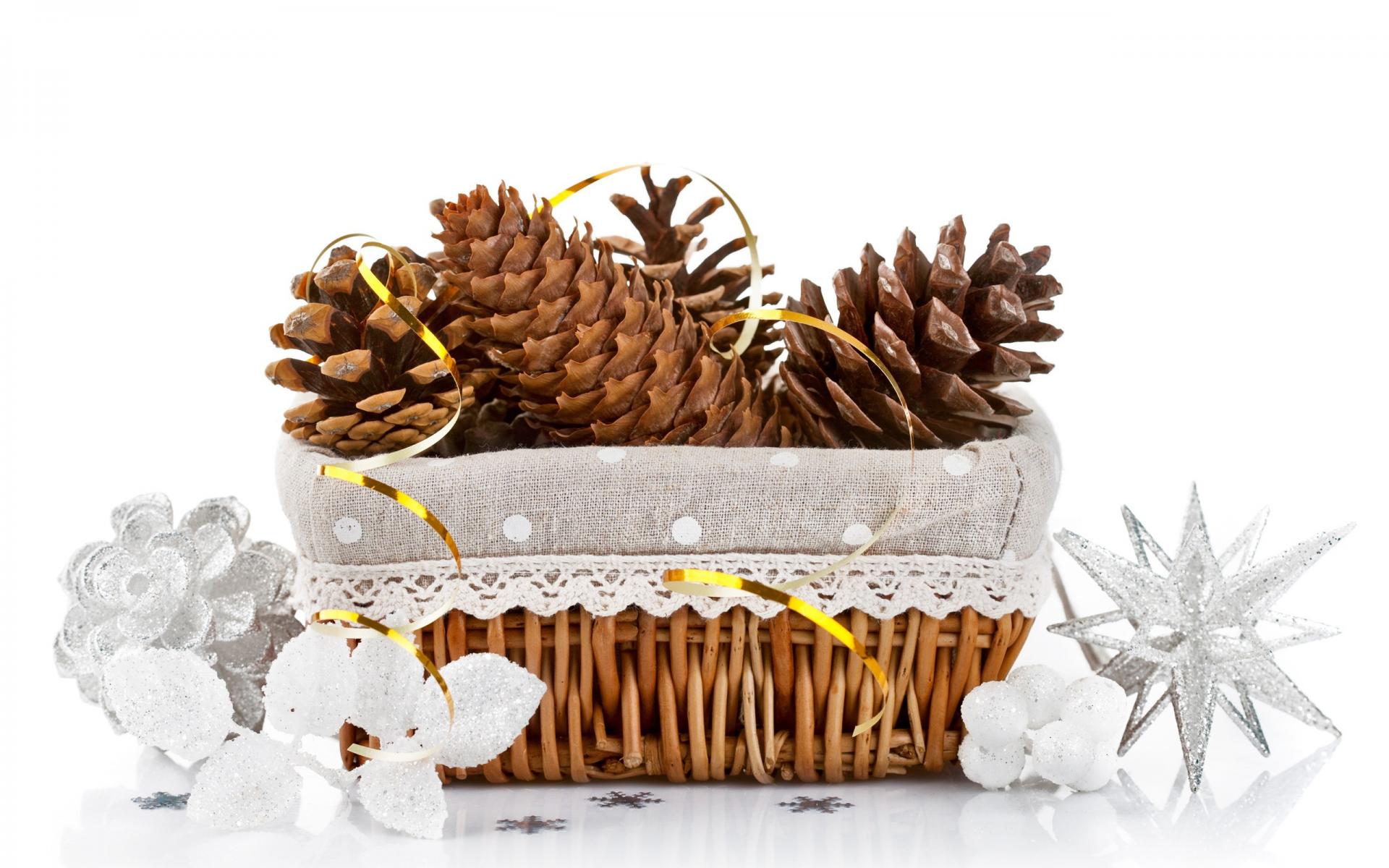 Обои Корзина с еловыми шишками