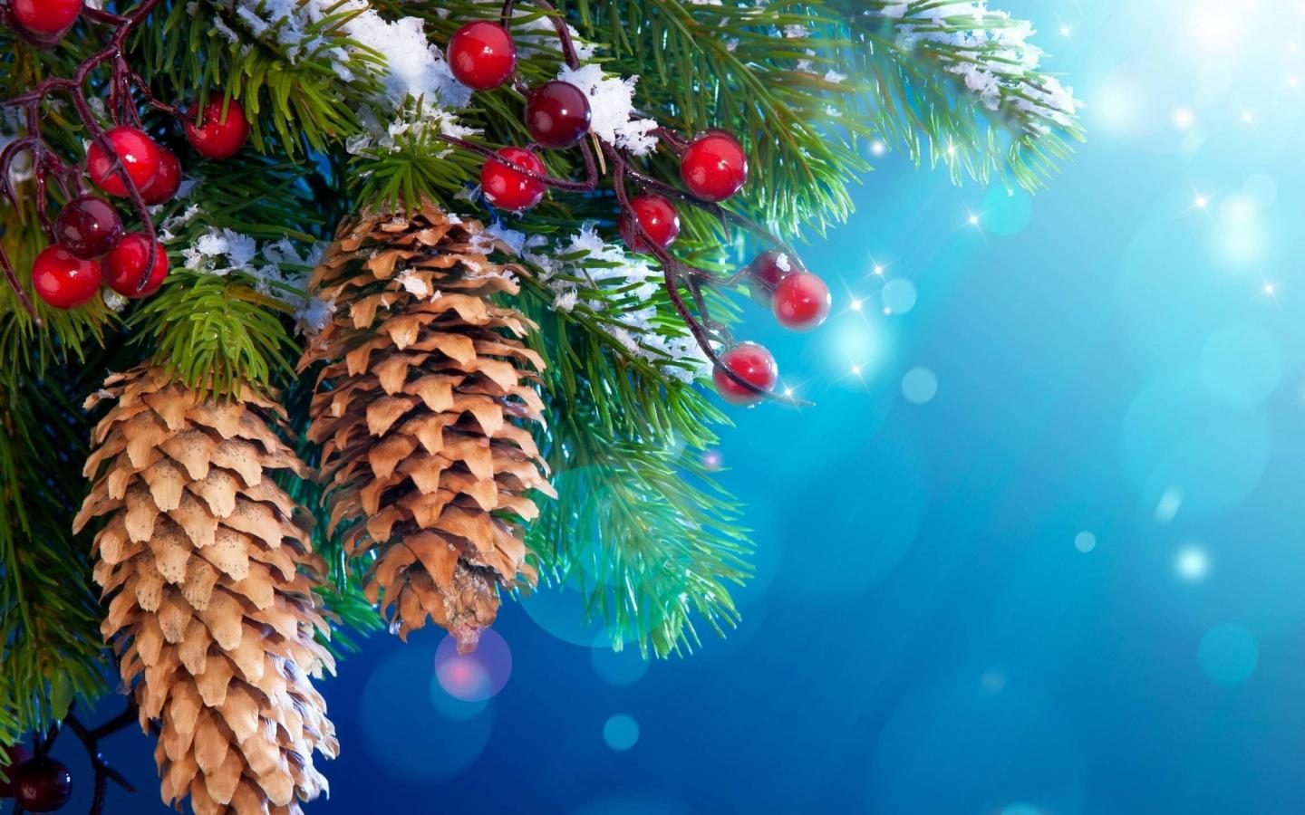 Обои Шишки и ягоды на хвойном дереве