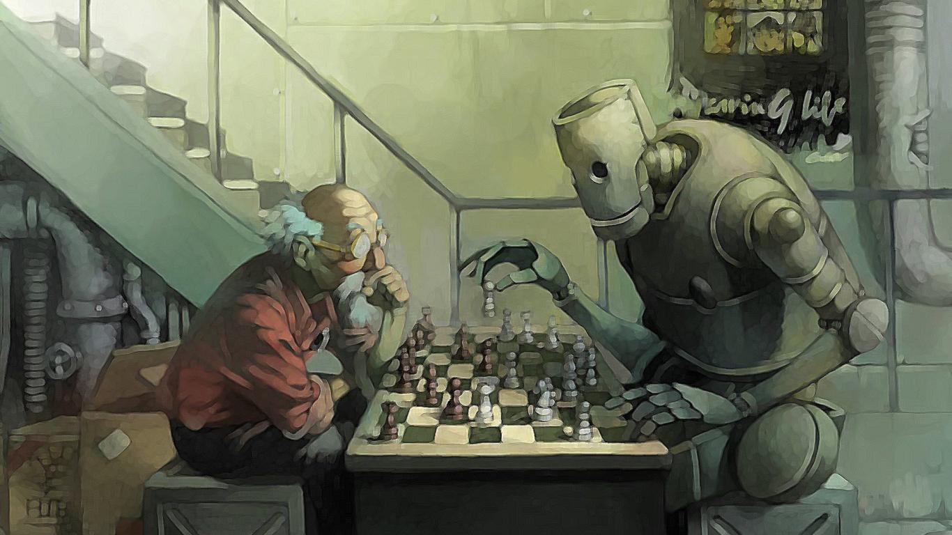 Обои Шахматы, дедушка, ящики