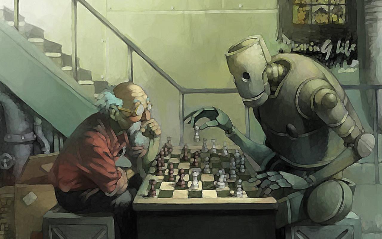 Обои Шахматы, дедушка, ящики
