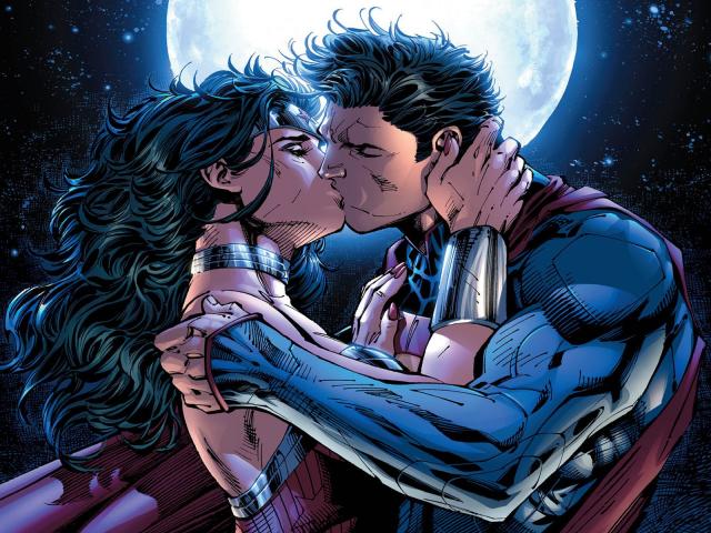 Обои Поцелуй, Луна, Супермен