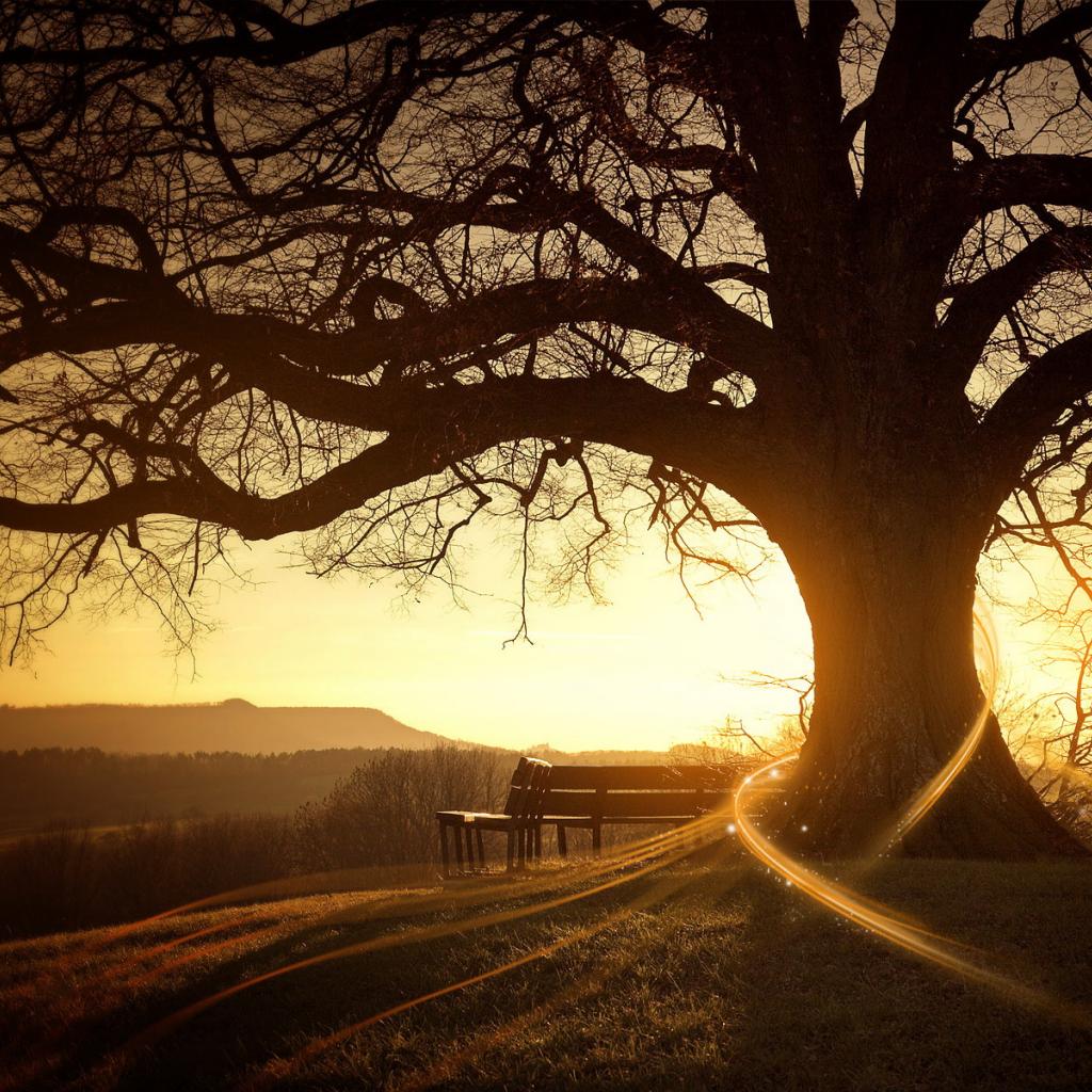 Обои Скамейка под деревом