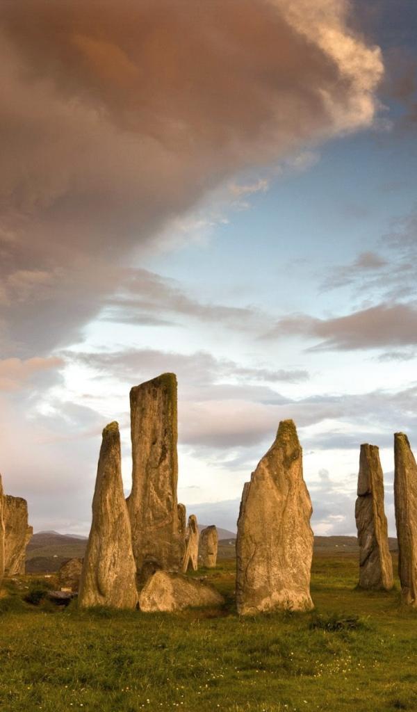 Обои Вертикальные лучи солнца сквозь разрывы в облаках