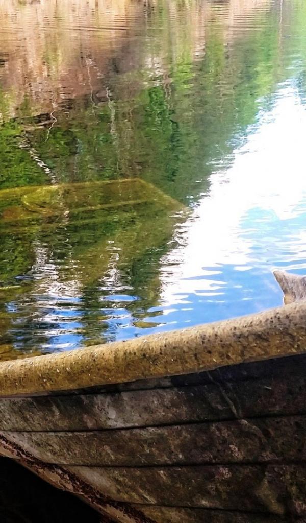 Обои Заброшенная лодка затоплена у берега озера