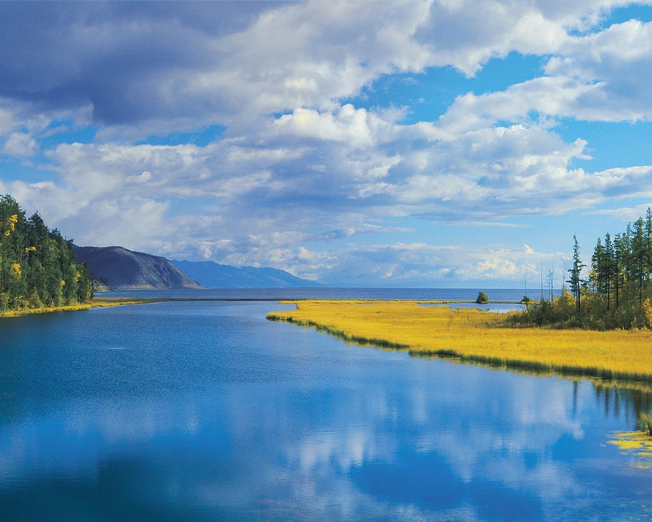 Обои Спокойная широкая река среди гор